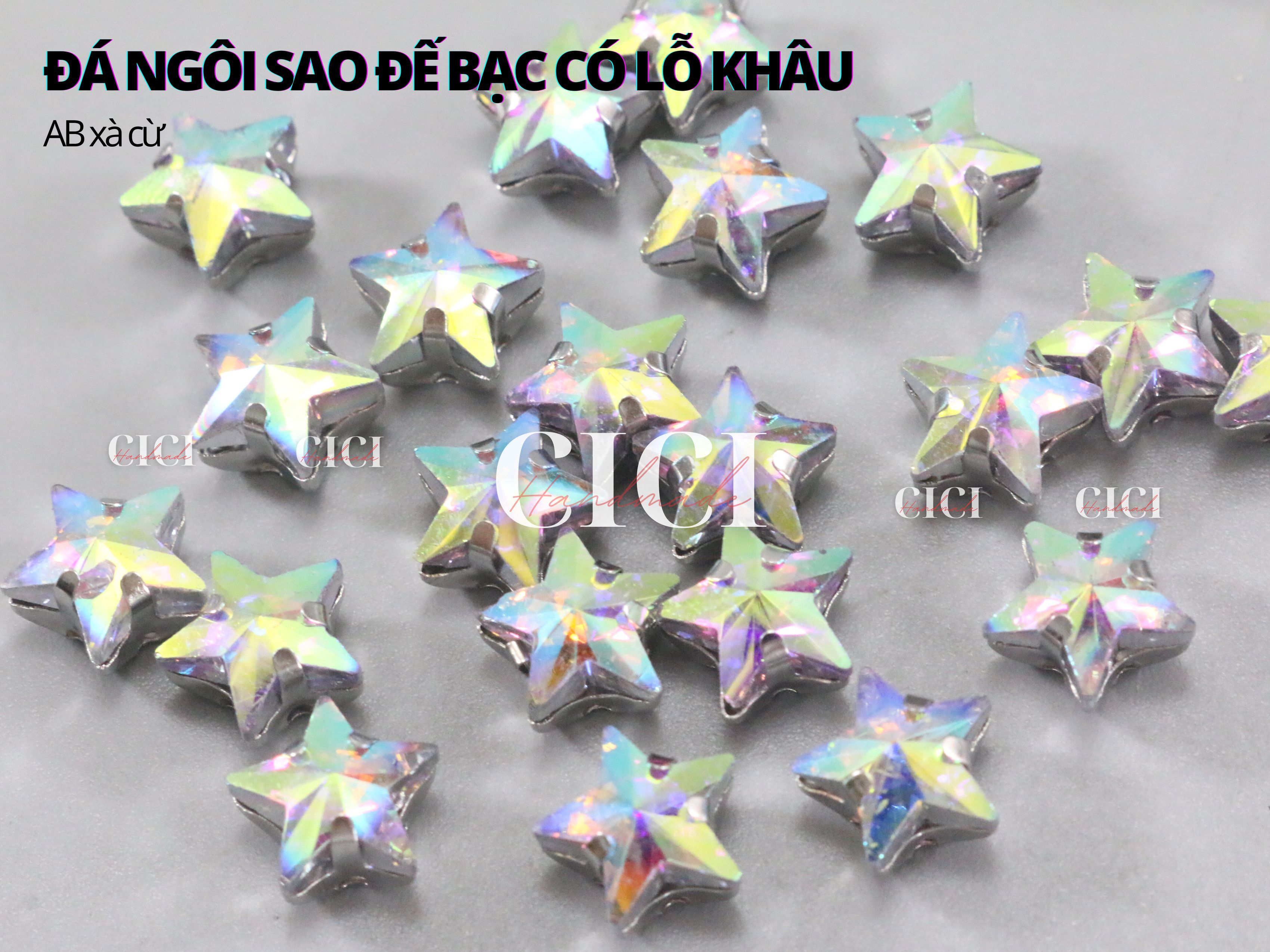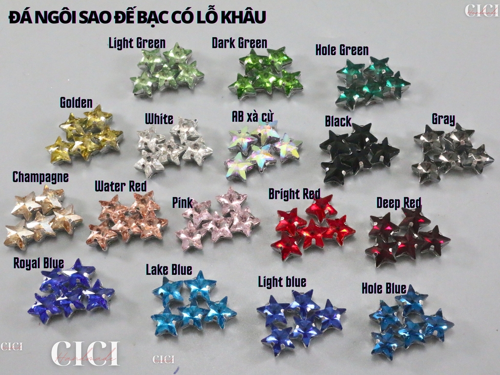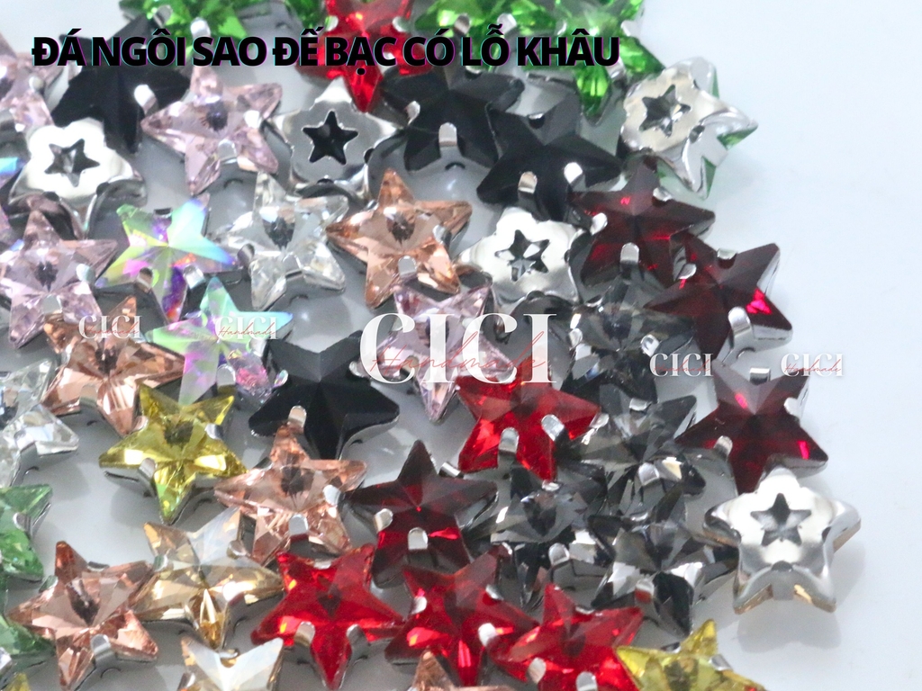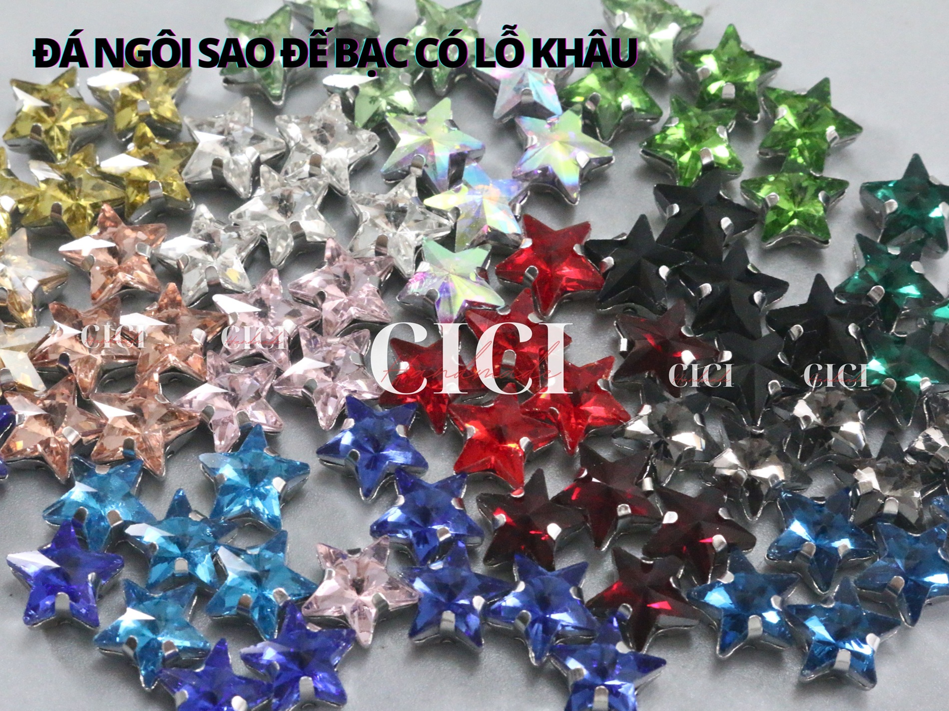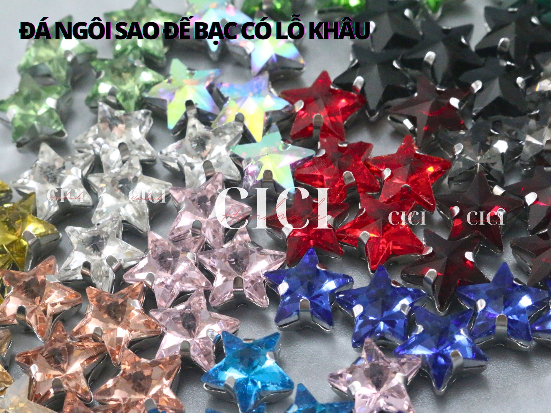Loại : Đá hình ngôi sao đế bạc khoen vuông nhiều màu (có thể gỡ rời đế)