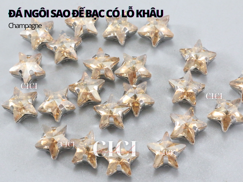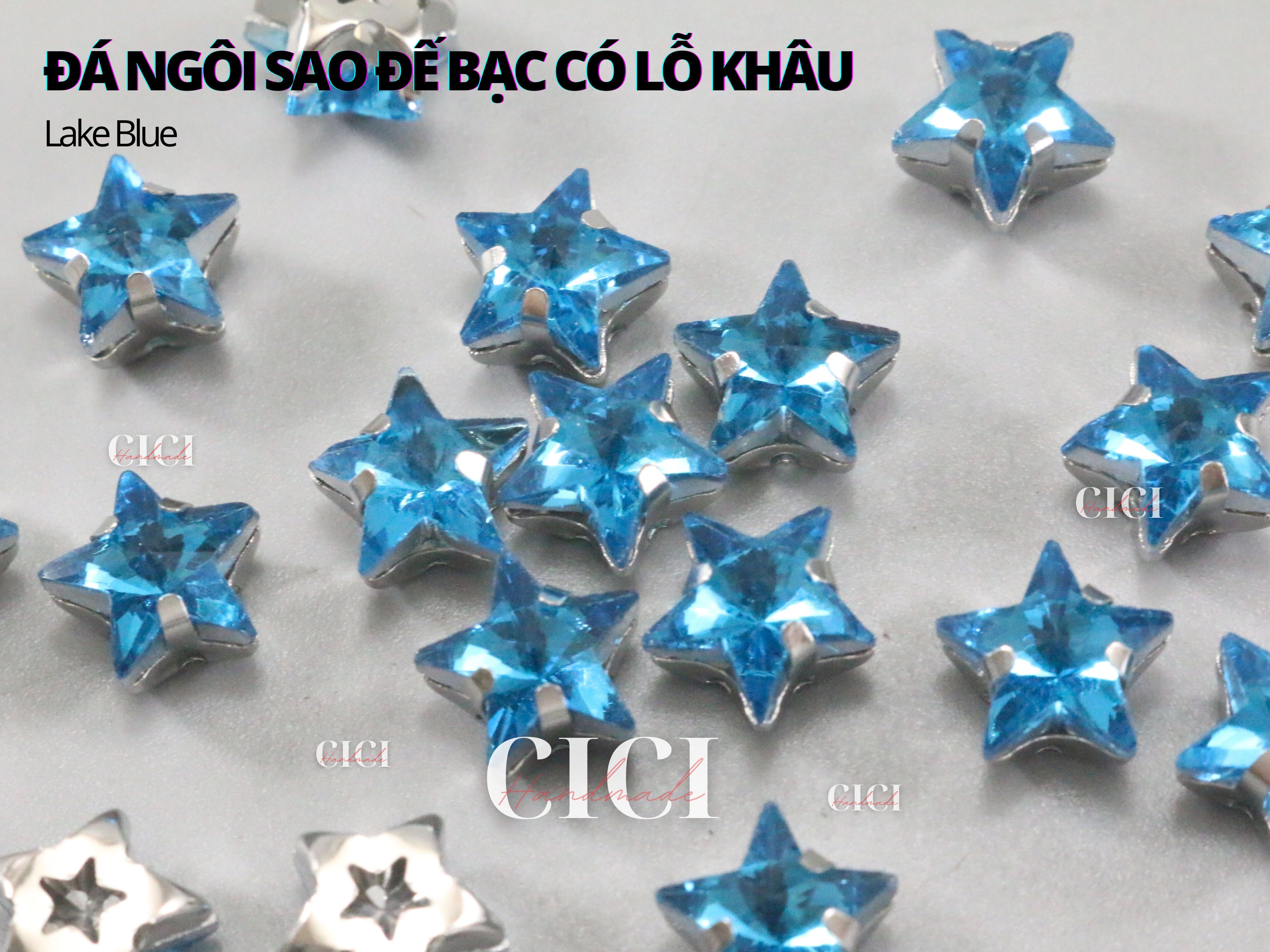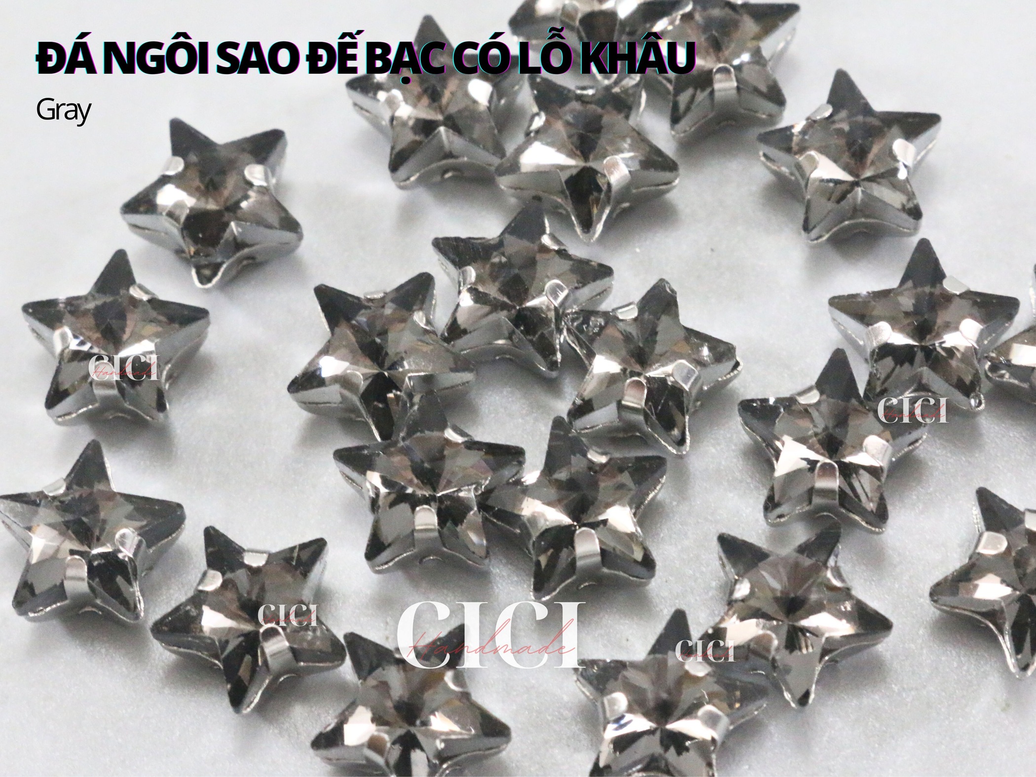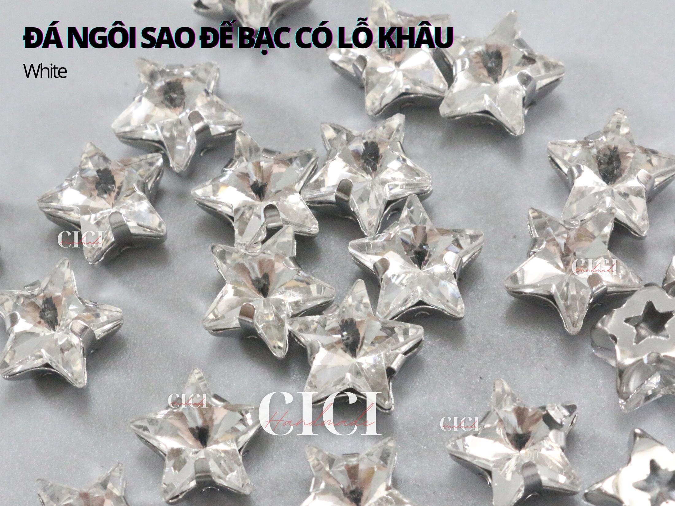 Loại : Đá hình ngôi sao đế bạc khoen vuông nhiều màu (có thể gỡ rời đế)