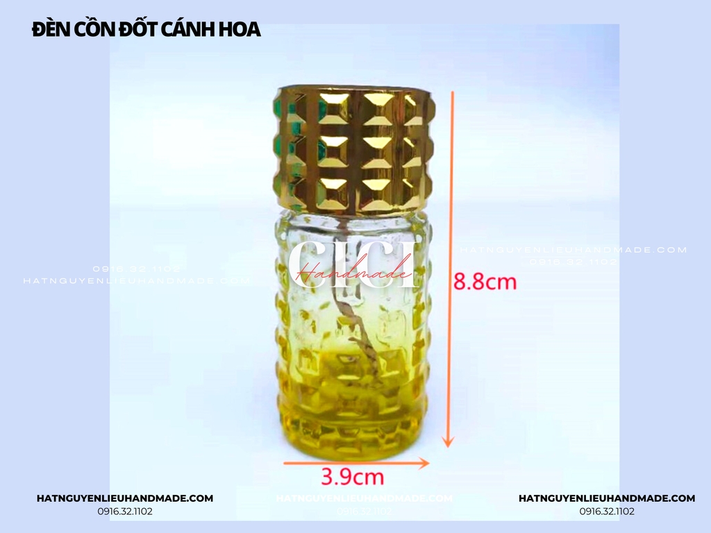 Set đèn bao gồm 01 dây bấc, không có cồn, khách có thể mua cồn 90 độ hoặc dầu thơm.