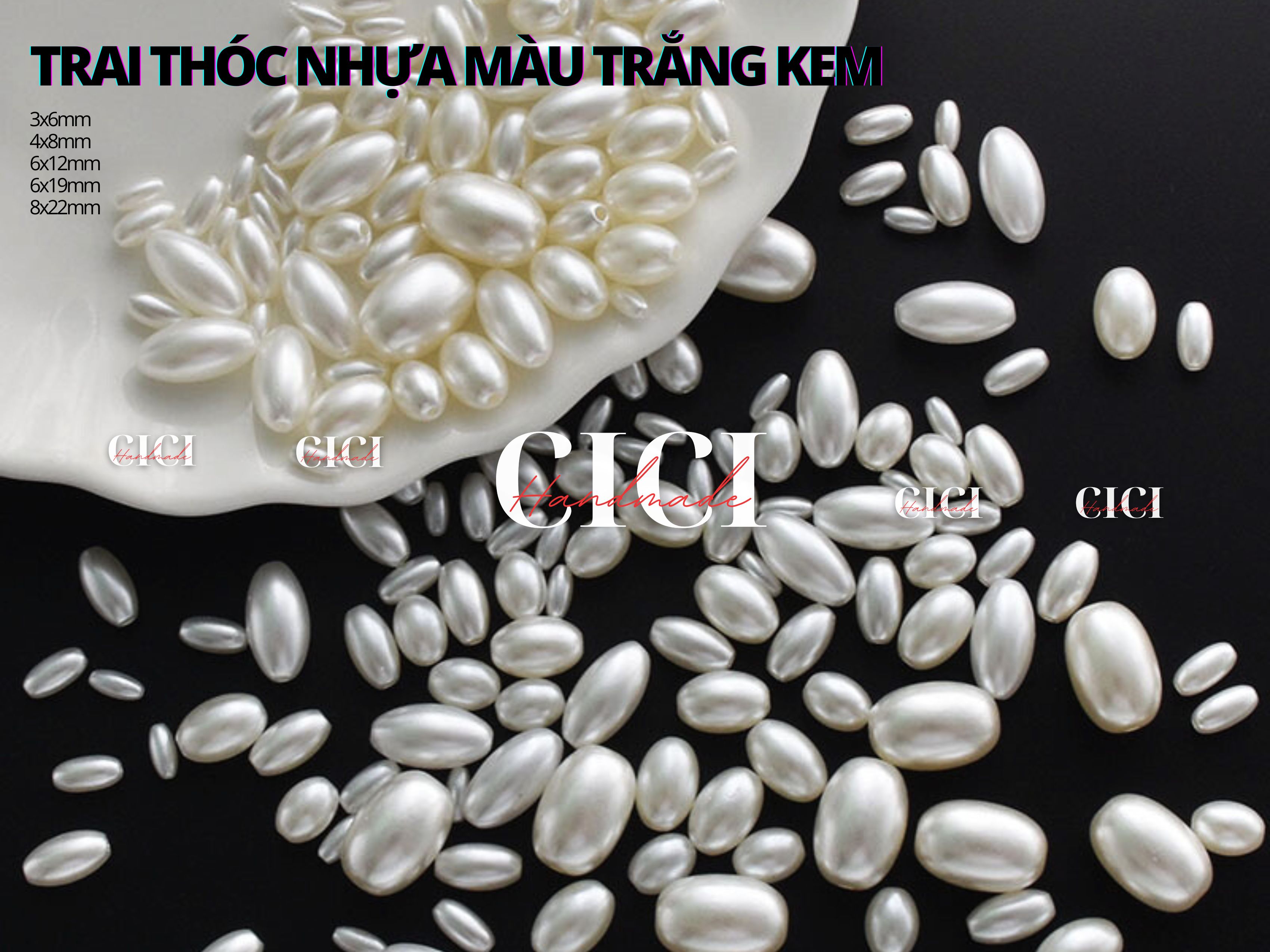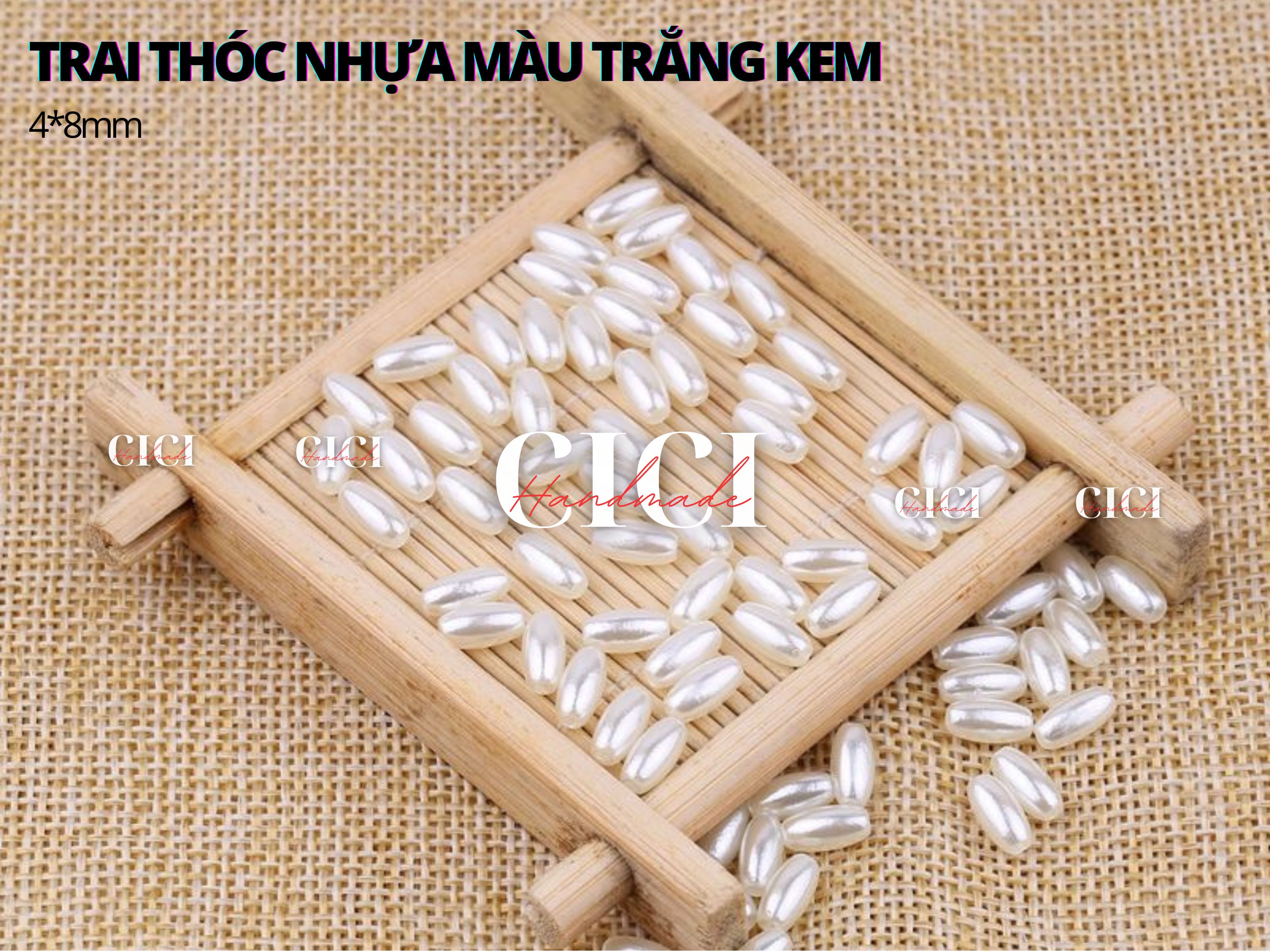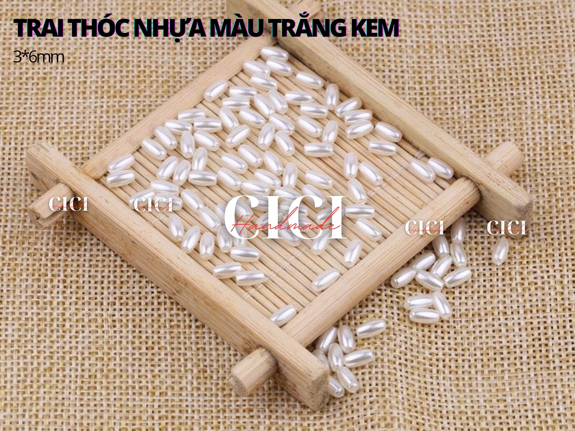 Túi 10g ~32h Trai thóc nhựa màu trắng kem - 6x19mm