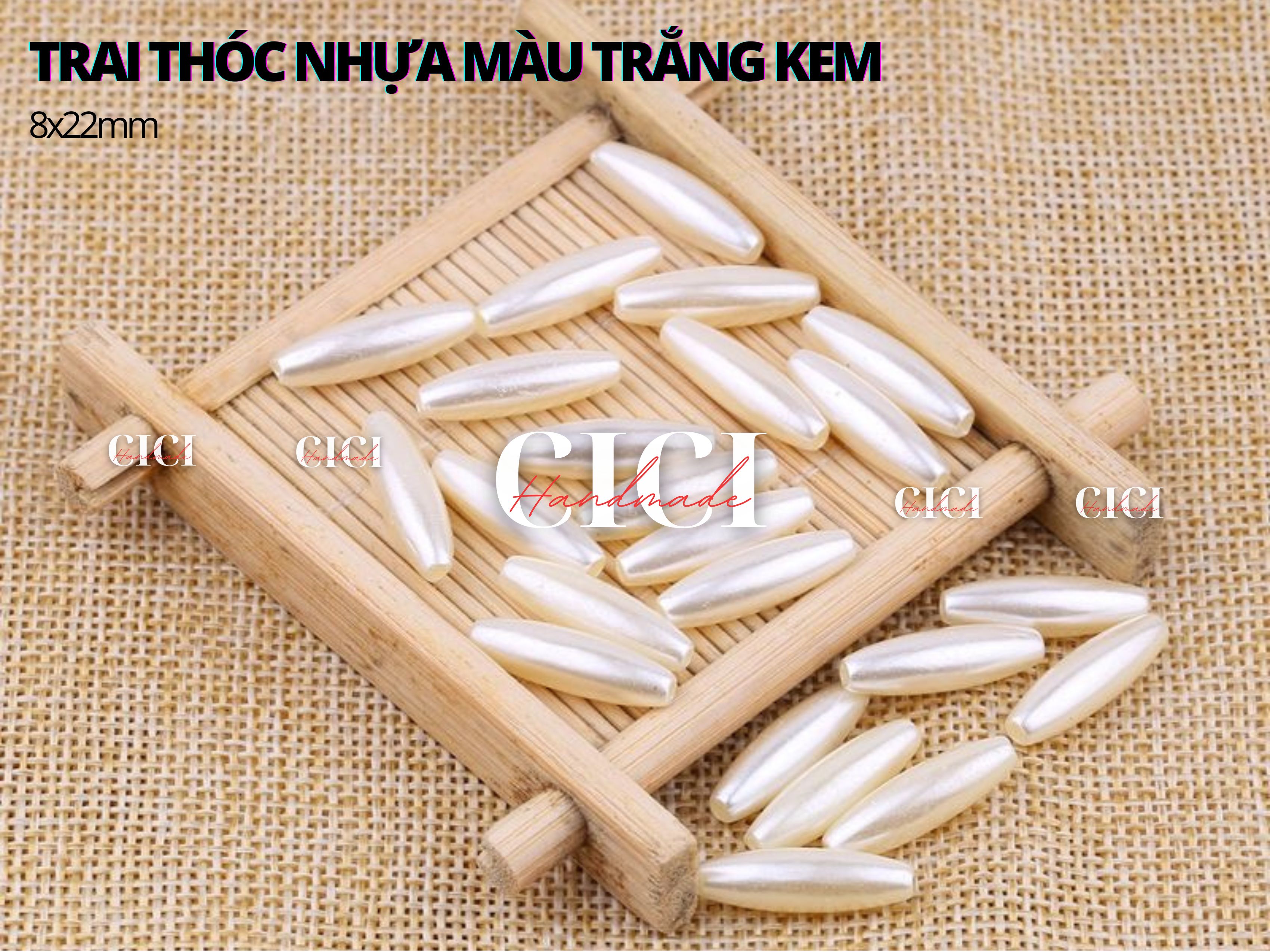 Túi 15h Trai thóc nhựa màu trắng kem - 8x22mm