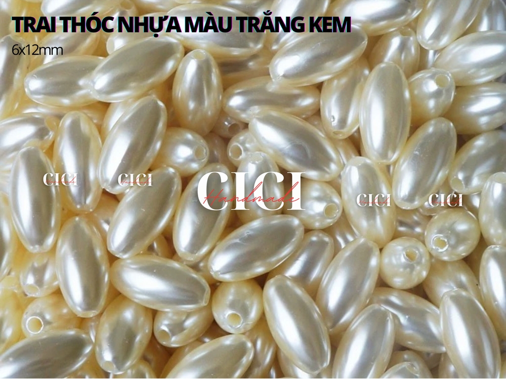 Túi 10g ~ 50h Trai thóc nhựa màu trắng kem - 6x12mm